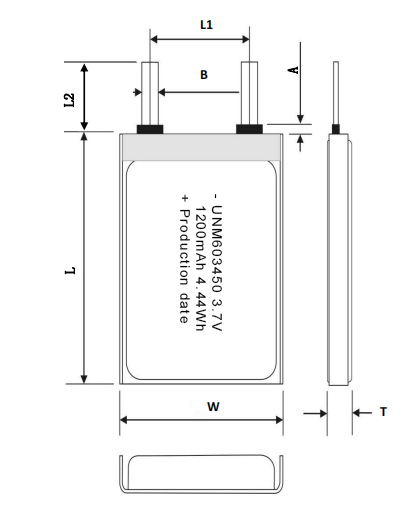 | Model | 603450 | Nominal Voltage/Capacity | 3.7V/1200mAh |
